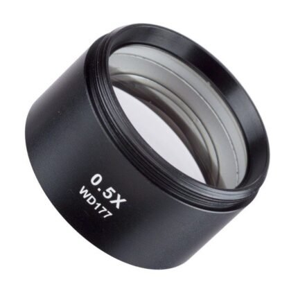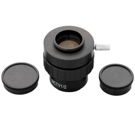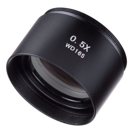 This is a 0.5X C-mount lens for Olympus microscopes. The lens adapts C-mount cameras with sensors in the 1/1.8″ to 1/2.5″ range, to Olympus BX, CX, MX, STM, SZX, IX, and GX series microscopes.