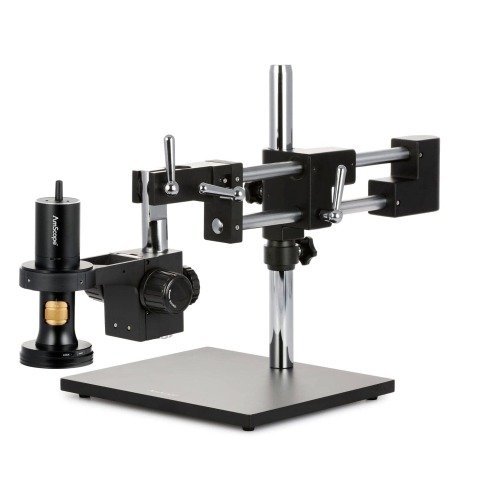 - Includes a heavy-duty, multi-pivot, double-arm boom-stand which allows the microscope to easily swing into place when needed, and away when not