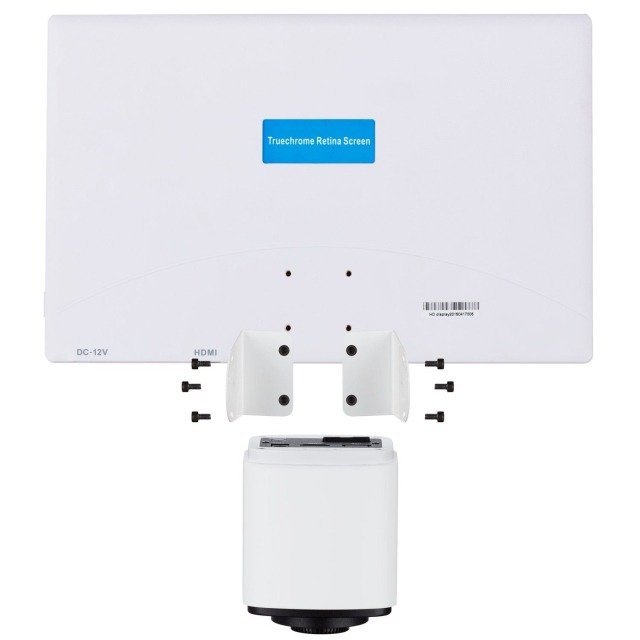 - This is our 1080p digital video camera and 11.6″ monitor, featuring up to 60fps. Everything you need to mount the camera and monitor is included, so you can conveniently view your microscope’s image without any external device necessary!