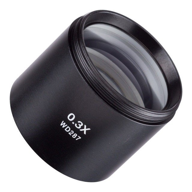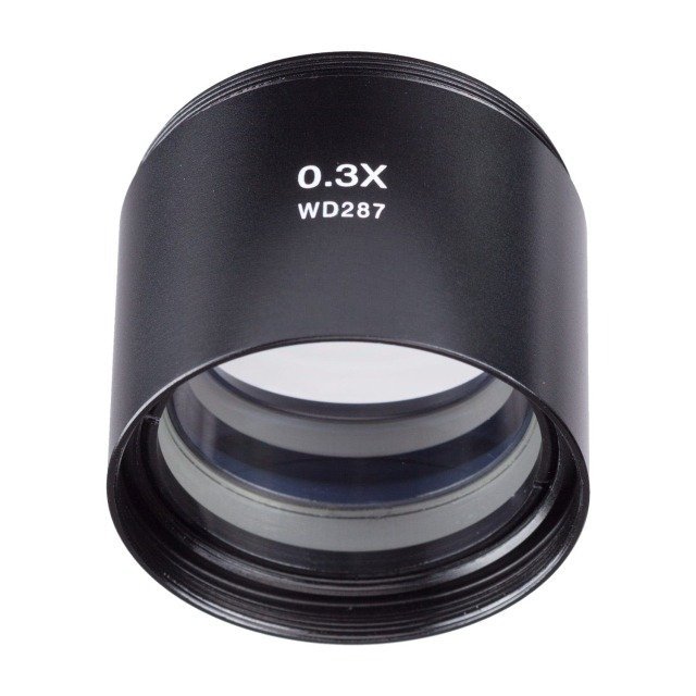 - 0.3X Barlow lens cuts magnification by 0.7X and increases the working distance to a maximum of 287mm (11.3in) with SM and/or SW series stereo microscopes.