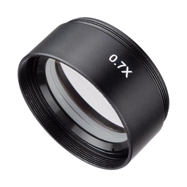 This is a brand new 0.7X auxiliary objective (Barlow) lens for SM series stereo microscopes. It extends the working distance and field view of the microscope and cuts magnification power by 0.7 times. This lens comes with a 1-7/8″ (48mm) mounting thread and goes with most stereo microscopes. Ideal for AmScope SM series stereo microscopes.