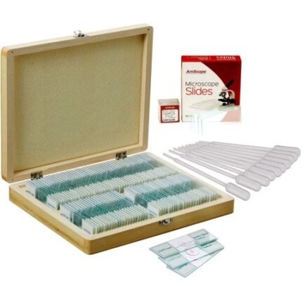 AmScope 100 Biology Prepared Microscope Slides – SET E, Blank Slide Coverslip Set and Pipettes 100 prepared slides of various
